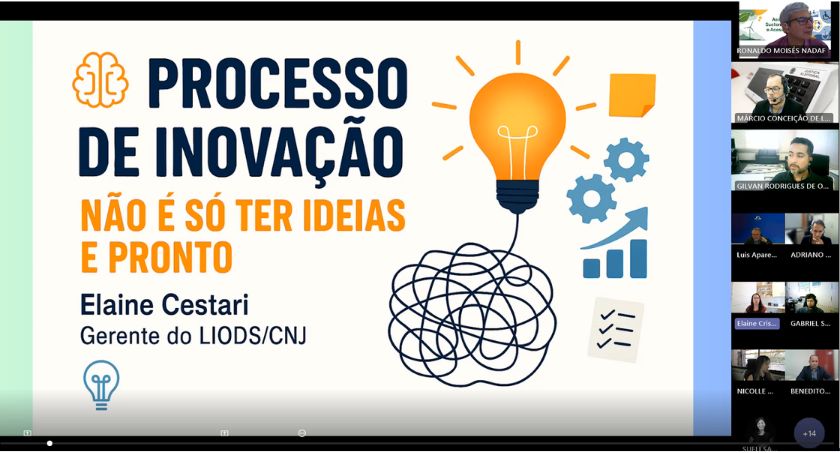 O primeiro dia teve, ainda, a explanação da gerente do Laboratório de Inovação e ODS do CNJ, Elaine Cestari, sobre o tema "Por que falar em ‘processo de inovação’ (não é só ter ideias e pronto?)". Ela destacou a necessidade de um ciclo estruturado de inovação, alinhado aos princípios do Design Thinking, que envolve as fases de empatizar, definir, idear, prototipar e testar, sempre com foco no usuário. “A inovação vai além de uma simples ideia, exigindo um processo robusto e documentado”, afirmou. O encerramento incluiu um "sobrevoo passo a passo do processo", abordando proposta de indicadores, categorização e os principais atores envolvidos na inovação.
