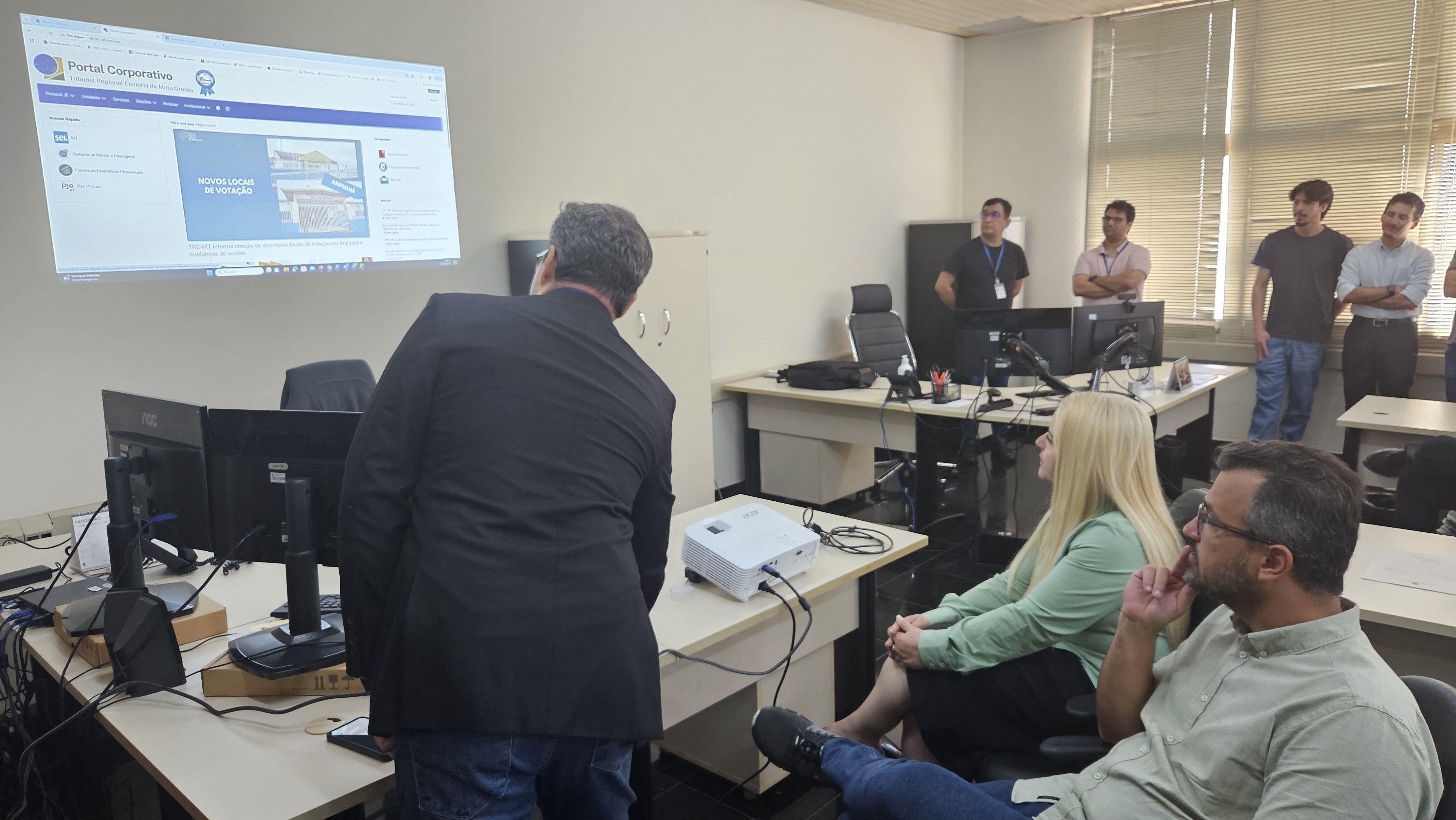 O secretário de Tecnologia da Informação, Leon Manoel Campos dos Santos Filho, apresentou os(as) coordenadores(as) do setor e anunciou a mudança de layout da página da intranet do TRE-MT. O novo layout foi demonstrado pelo chefe da Seção de Engenharia e Arquitetura de Software, Edgard Beltrão Leonel. “Temos uma equipe empenhada em pensar soluções que facilitem o acesso a sistemas e, ao mesmo tempo, tragam uma visão mais clean. Foi nisso que pensamos ao elaborar essas mudanças na intranet, que serão implementadas já na próxima semana”, frisou o secretário.