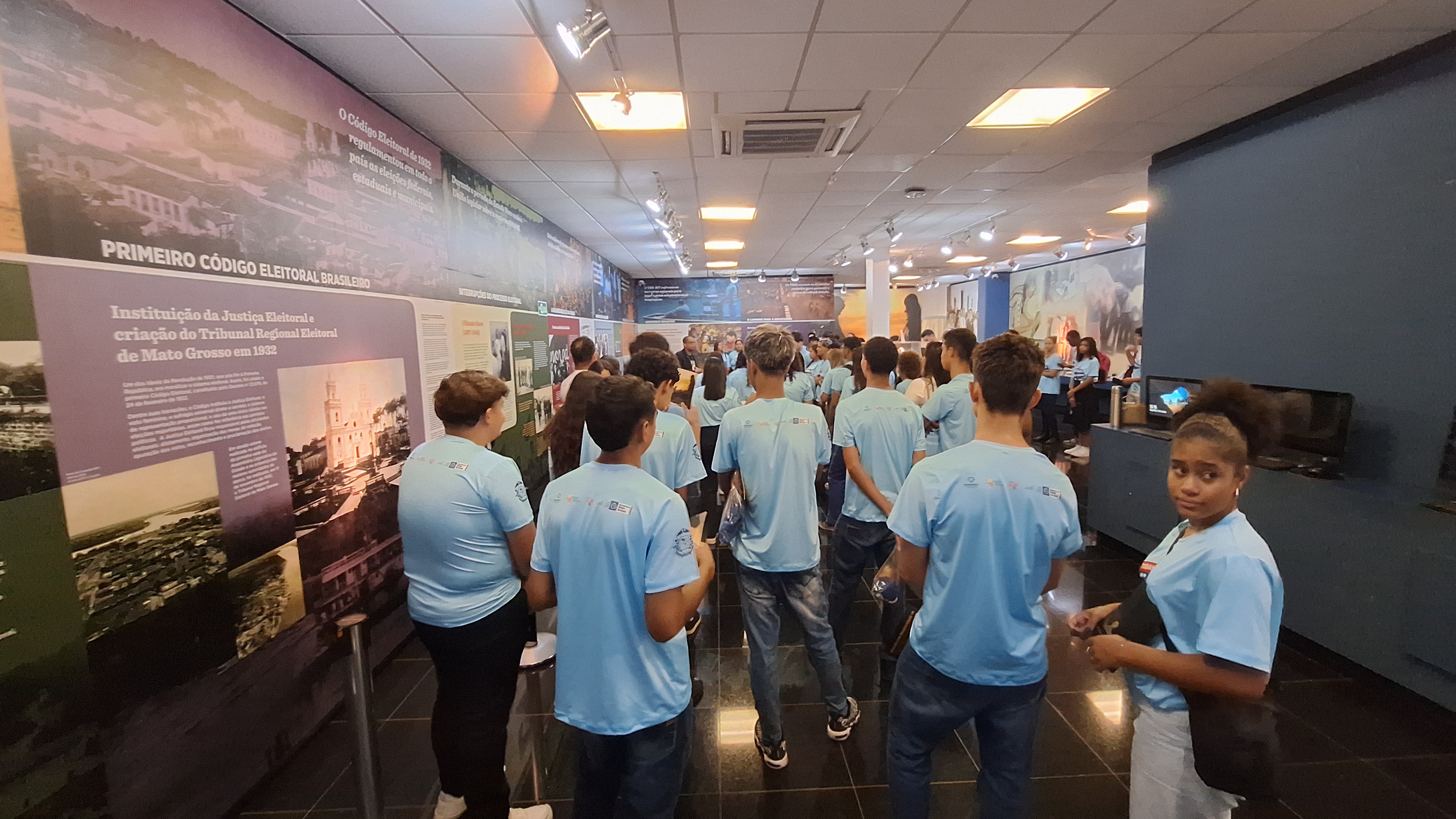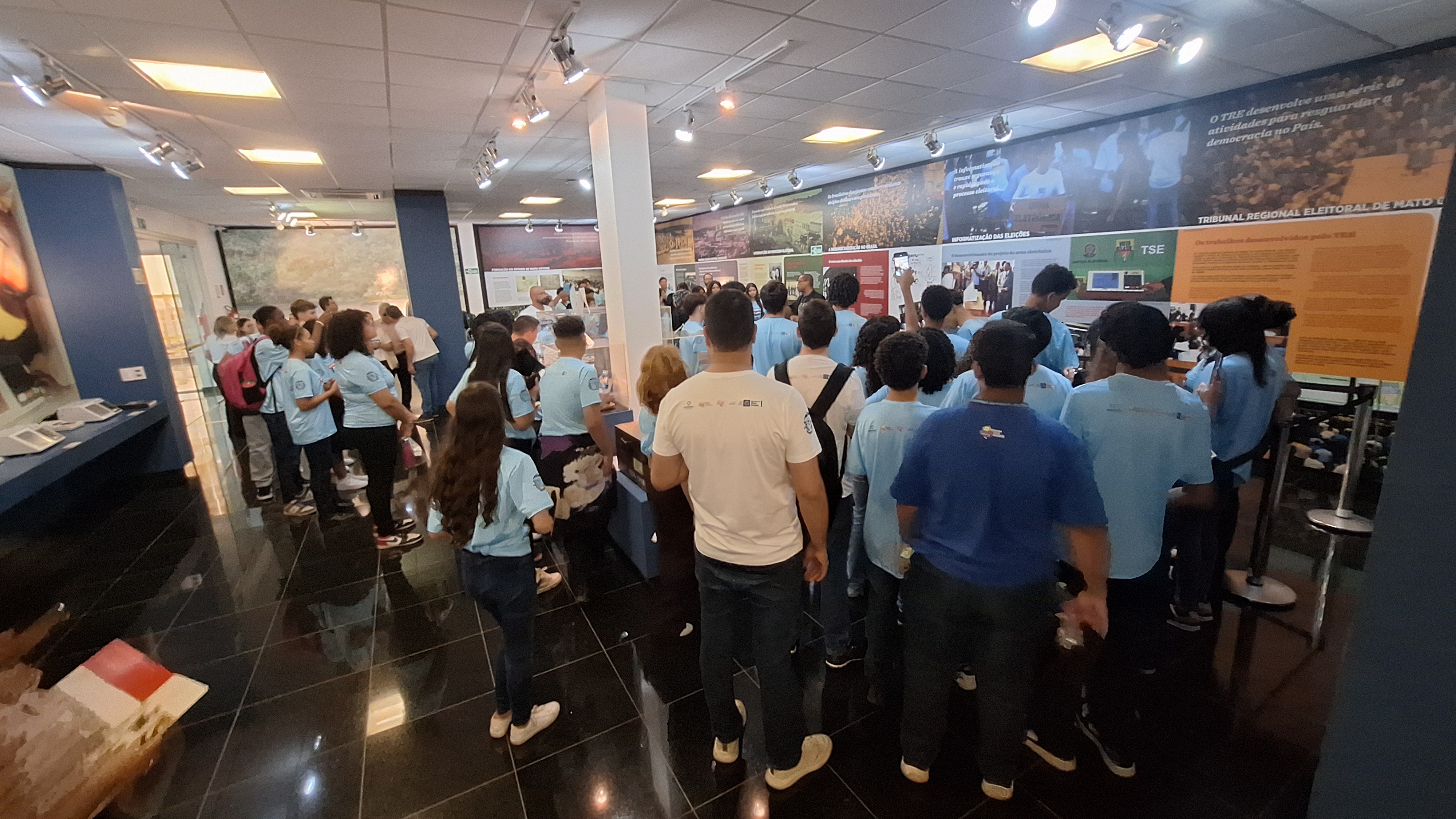 Cerca de 150 alunos do Ensino Médio de 10 escolas públicas estaduais participaram nesta terça-feira — de manhã e à tarde — de visita guiada pelas instalações da Casa da Democracia, prédio anexo ao Tribunal Regional Eleitoral de Mato Grosso (TRE-MT), na Avenida do CPA, em Cuiabá. A visita é parte do projeto "Estudante – Cidadão do Futuro", idealizado pela Controladoria-Geral do Estado (CGE-MT) e executado pela Secretaria de Estado de Educação (Seduc-MT). Os alunos visitaram o Memorial e o Depósito de Urnas, acompanhados da equipe da Escola Judiciária Eleitoral de Mato Grosso (EJE-MT), que por sua vez deu as boas-vindas aos futuros eleitores.