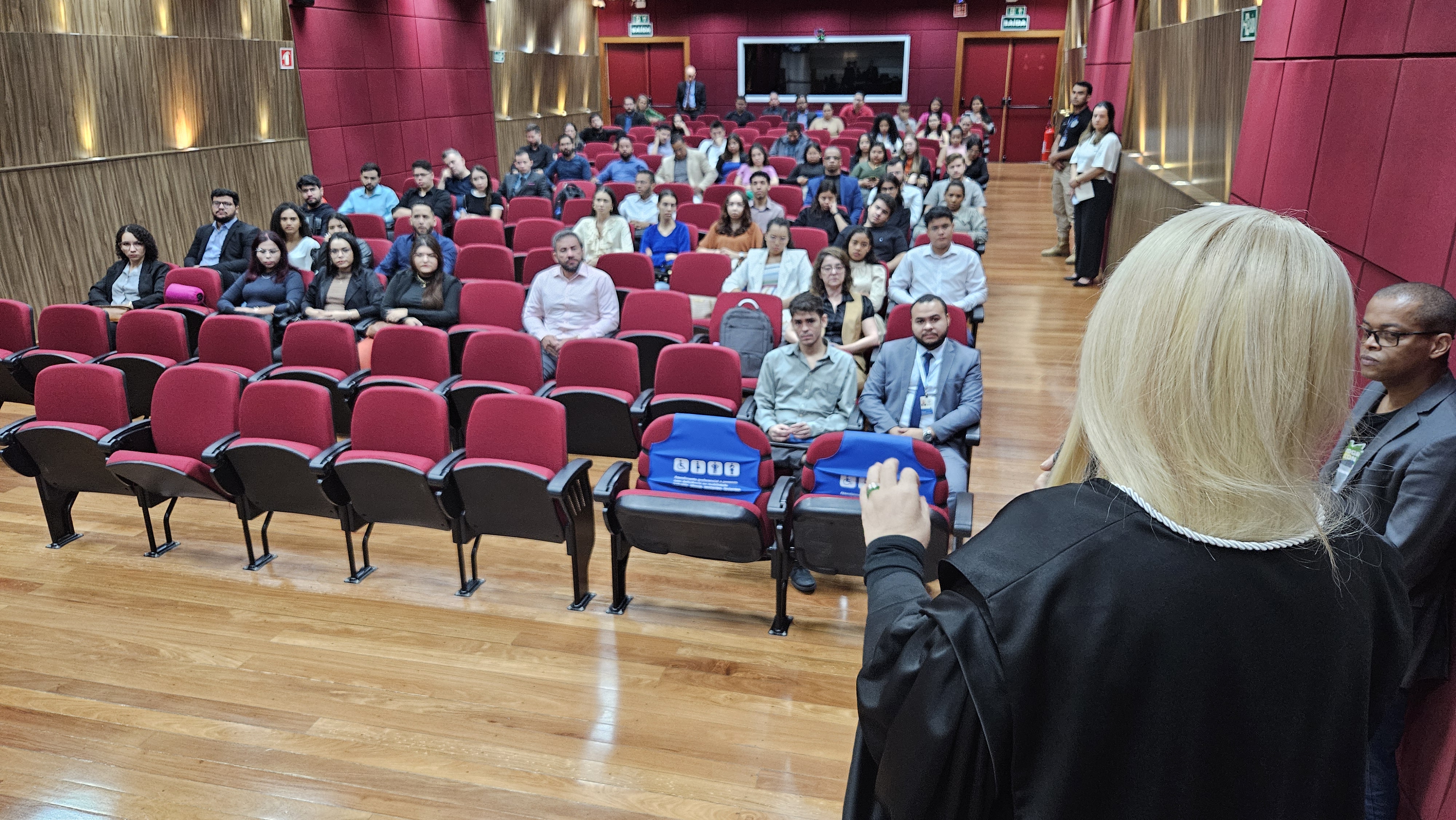 Durante a visita, os alunos puderam acompanhar uma sessão plenária e conhecer a estrutura administrativa e tecnológica do Tribunal. A presidente do TRE-MT, desembargadora Serly Marcondes Alves, destacou a importância do contato direto com o ambiente da Justiça Eleitoral.