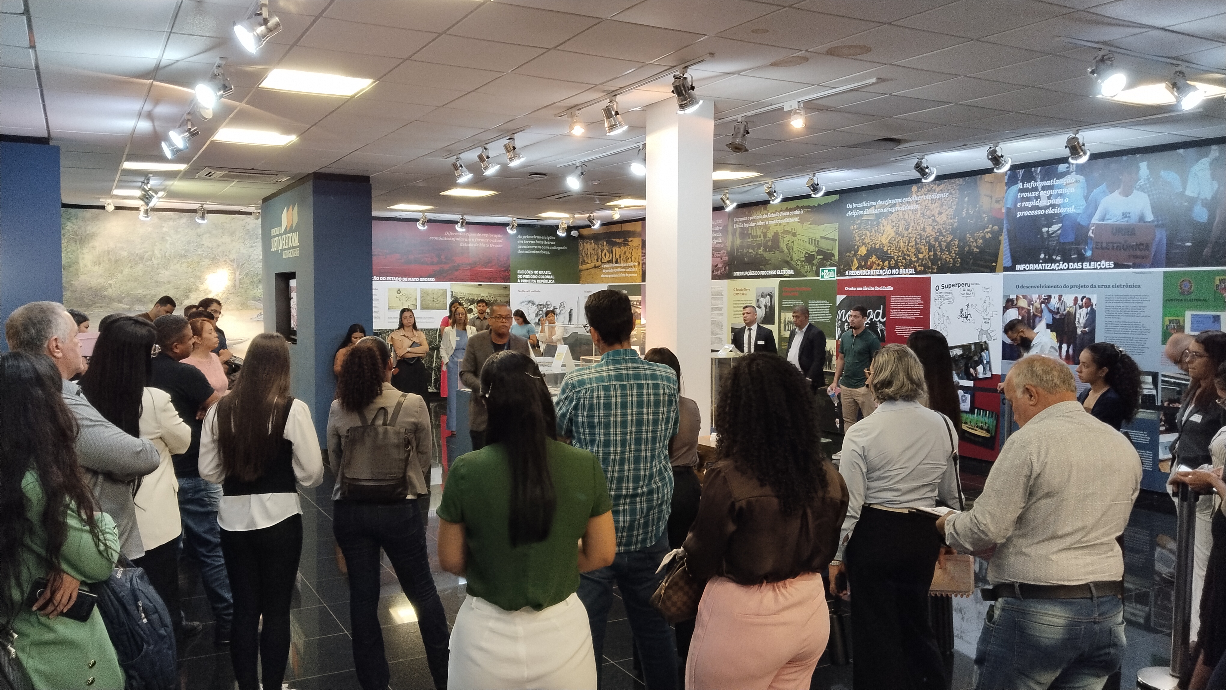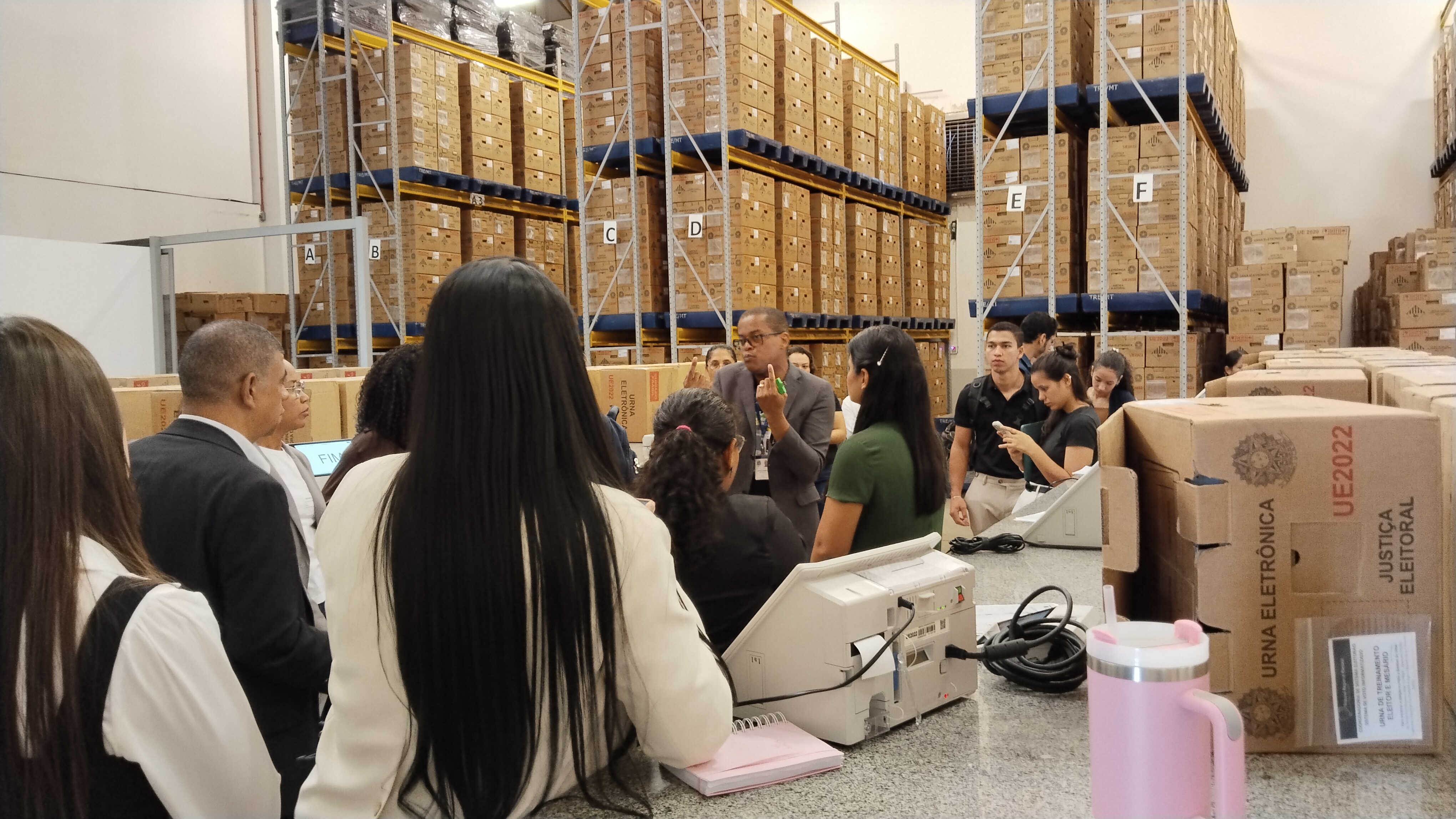 Na sequência, durante a visita ao Depósito de Urnas e ao Memorial Eleitoral, o coordenador de Soluções Corporativas do TRE-MT, Carlos Henrique Cândido, apresentou aos estudantes o processo de manutenção, verificação e segurança das urnas eletrônicas. Ele também traçou um panorama histórico das eleições no Brasil, destacando a evolução tecnológica e a consolidação da democracia no país.