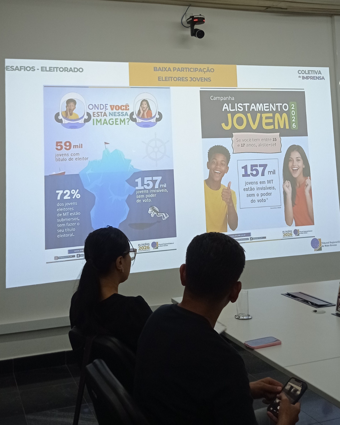 Um dos públicos-alvo das campanhas do TRE-MT é justamente o jovem eleitor, especialmente estudantes secundaristas com idades entre 15 e 17 anos, em que o voto é facultativo. De acordo com informações apresentadas pelo jornalista Daniel Dino de Souza, assessor de Imprensa do TRE-MT, 157 mil jovens, potencialmente eleitores, ainda não tiraram o título de eleitor. “São eleitores invisíveis, sem poder de voto, quando temos apenas 59 mil jovens com título de eleitor, o que corresponde a 59 mil meninas e meninos em todo o Estado”, avaliou.